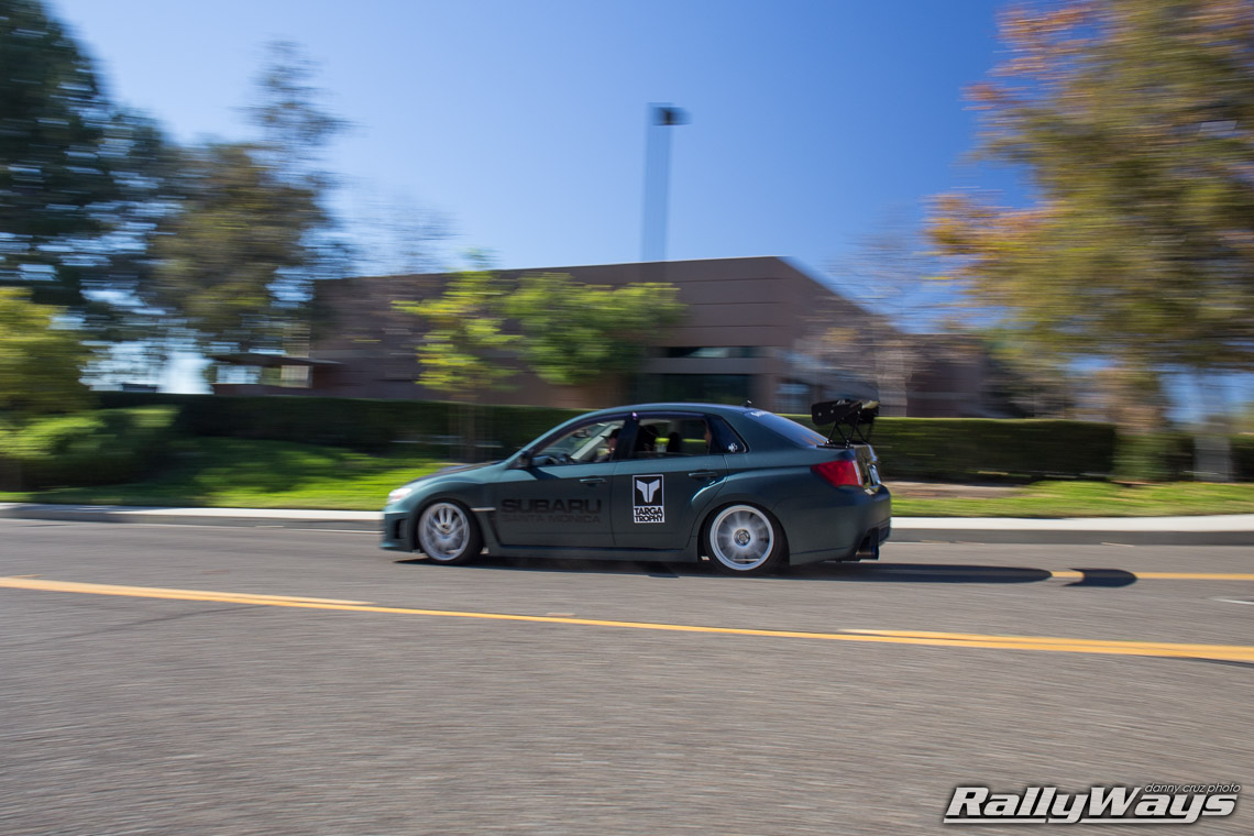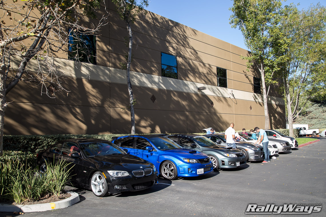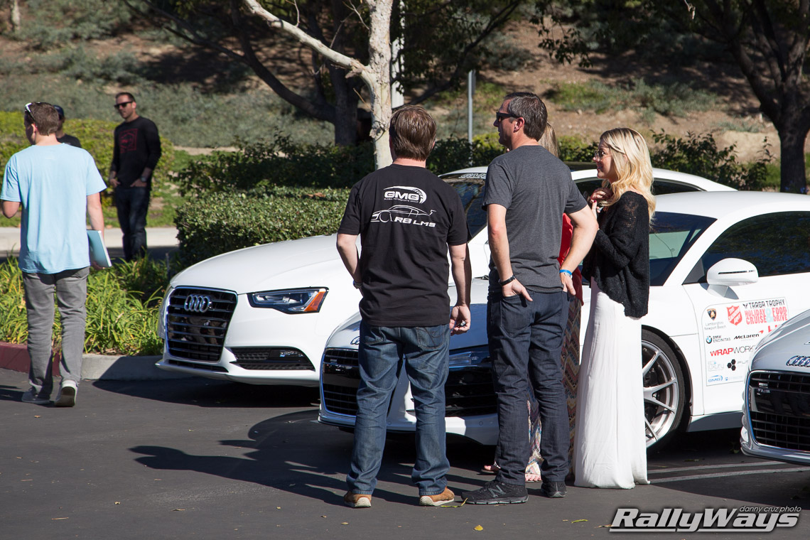 200 rolling photos later, we were in Lake Forest, California for the pre-drive event. Here we are at a Targa Trophy event, at the start of winter in a ambience reminiscent of the HRE Open House, without the summer heat. Cars are lined up left and right filling the entire lot at Fusion of Ideas Technology Center offices as well as the lot across the street. Drivers and navigators were getting ready for the drive and cars were being plastered with Targa Trophy decals. Good music, car culture friends and a food truck set the mood for the start of the drive.