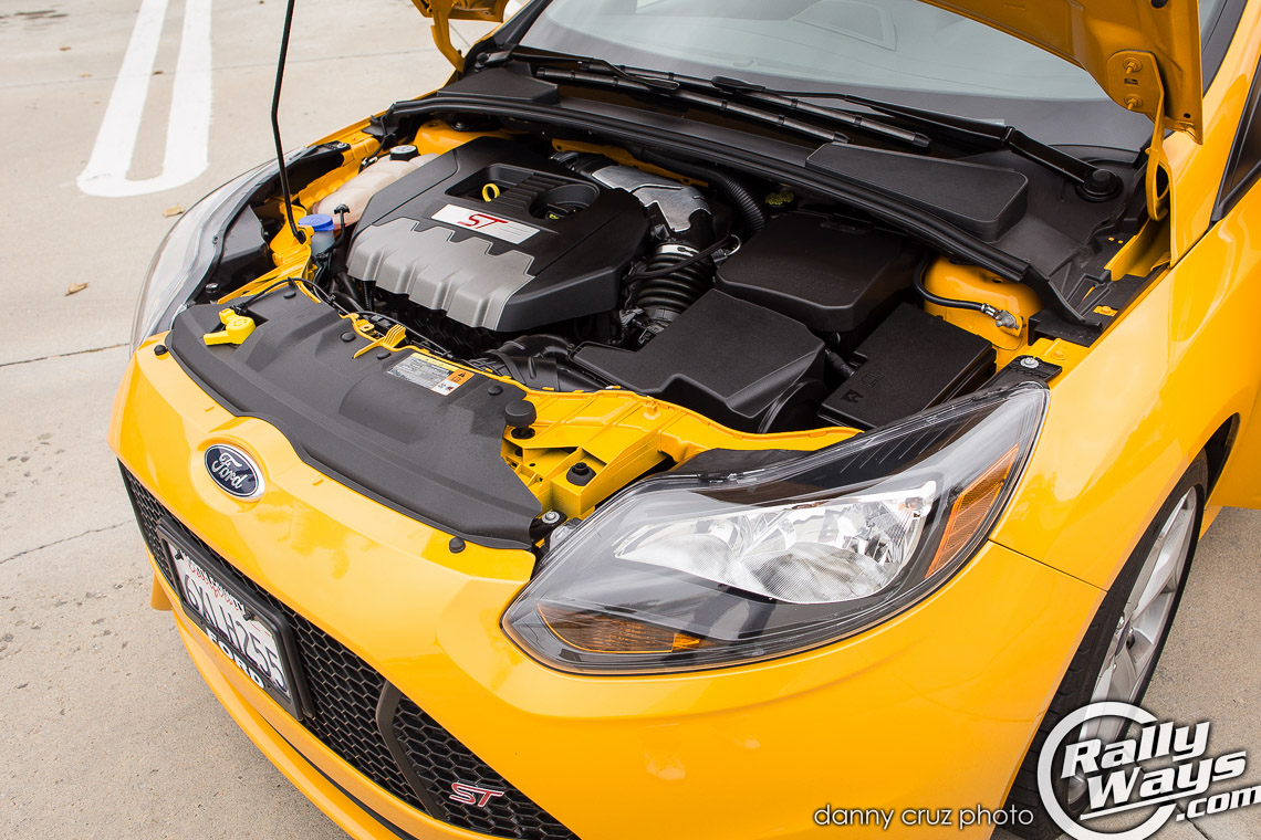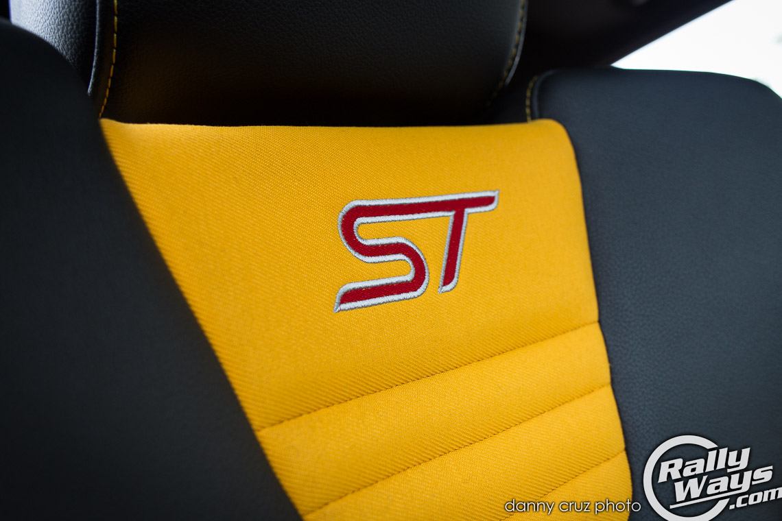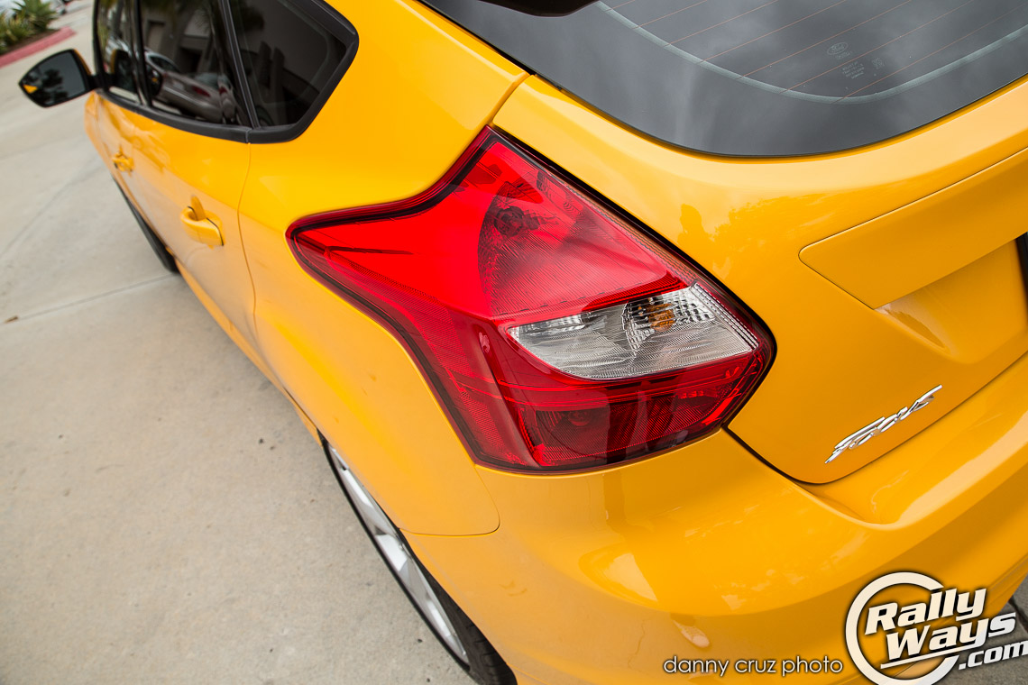 This particular Ford Focus ST is painted in Tangerine Scream – A shocking yellow that has quickly become the seminal Focus ST color. Ever since I saw the car for the first time at San Diego Auto Show 2012, the bright yellow paint got ingrained in my consciousness. Any time someone says, “Ford Focus ST” that bright yellow image of a turbo hatchback spinning on the Ford display stand comes to mind.